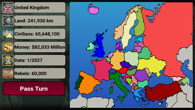 作为反叛分子的领导者,你被选为你们国家的首领!基于真实数据,该游戏旨在考虑数千种可能的场景。使用外交或宣战。全取决于你!