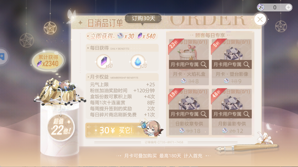 30元月卡性价比达22倍,可获得元气上限提升等权益,还能解锁月卡专属折扣道具。