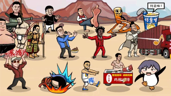 梗王之王游戏手机版是一款休闲类游戏。游戏采用非常搞怪的手绘风格画面,将各个经典的网络热梗角色以独特的方式呈现在玩家的眼前,如东北雨姐、吴京、哈基米等等。玩家需要在字池中选择相关字来组成热梗词,以此来召唤出相应的人物来进行战斗,并可以使用刷新按键来选择更多的热梗词。此外游戏中还融入了解谜闯关玩法,提供了剧情谜题供玩家挑战。