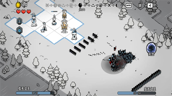 8、城堡 城堡的攻击是手动的,会对手指点击处进行攻击,点击上方的auto可自动攻击。