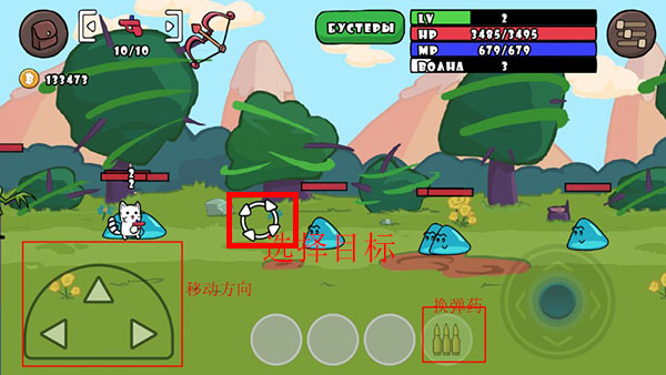 3、左边移动你的人物,控制瞄准镜选择攻击目标,弹药用完后选择右下方换填充弹药。