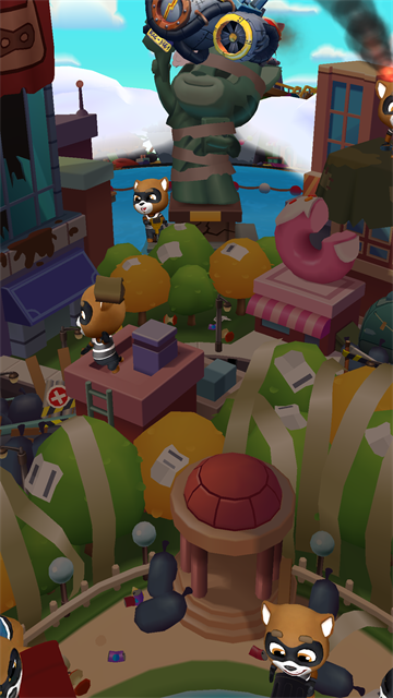 2、经营养成:使用金币,逐一驱赶被浣熊占据的城市建造,解锁下一章主题。