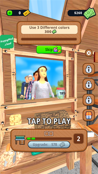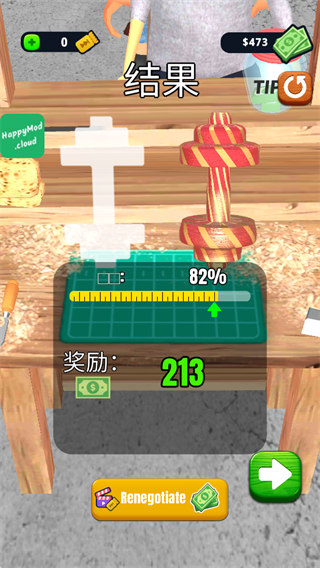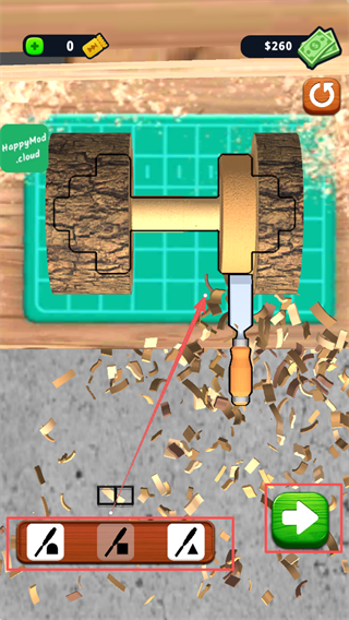 3、丰富的关卡挑战,每一关都有不同的要求,你也可以自由的发挥,进行削木头