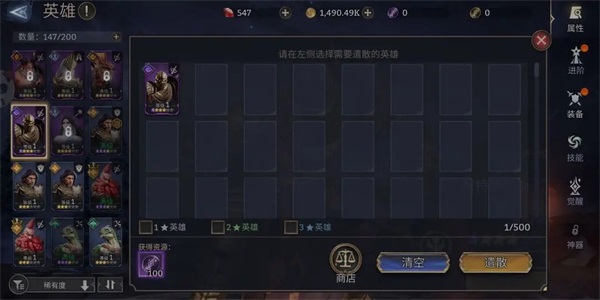 当你不小心培养错英雄也不要紧,可以使用英雄重置功能,把材料、经验全部回收。