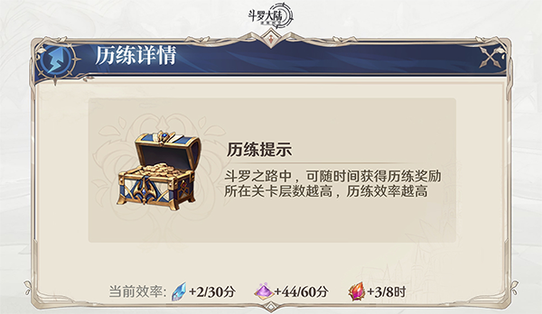 斗罗之路可分为综合试炼、五系试炼,提升各系别的档案等级可用来提升对应试炼关卡的上限。综合试炼主要产出魂师碎片,五系试炼产出召唤券、魂晶,两类试炼都要求我们尽可能提升队伍战力才能持续推进。