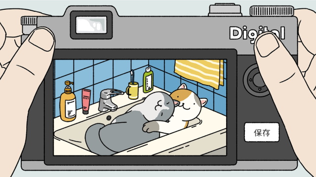 ②每次离开一断时间会有一个拍照环节,来纪录你的萌宠的一些温馨画面,每次打开都会让你有一结小小的触动,而且这个设计了一个先点下快门,再出画面的交互过程。