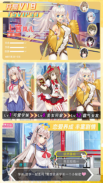 3、与多位风格各异的校花角色培养情感,好感度提升后解锁专属剧情、语音与精美CG,打造你的“后宫梦工厂”。