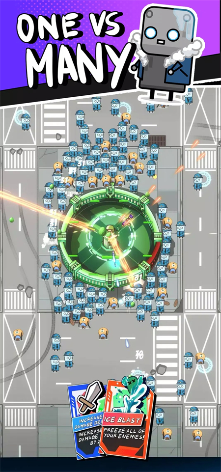 3、处市中心的炮塔,您将运用智谋与力量,升级武器与技能,抵御一波又一波的敌人。