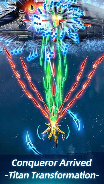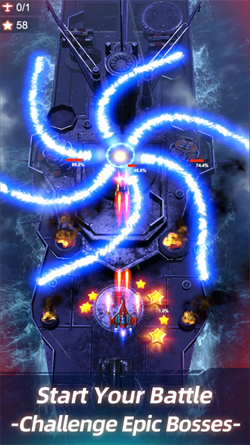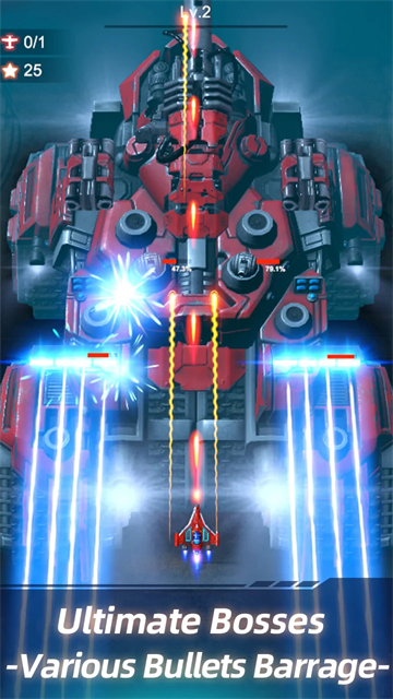1、击落敌方战士,挑战强大而多样的终极首领。
