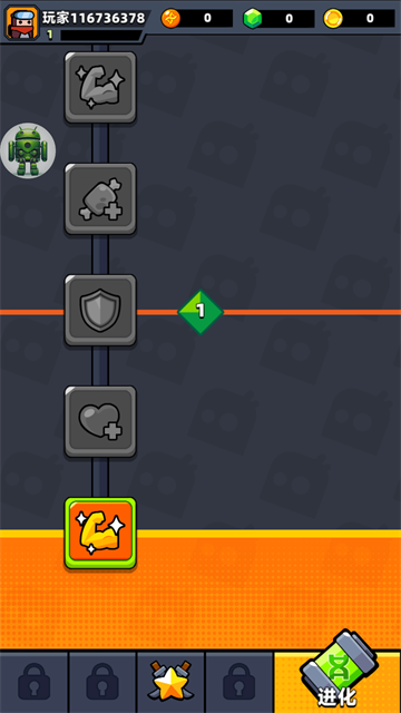 11级关键进化是重点,获得装备的第二手段,但是概率有点低,通关10次第二关才6件装备5白1黄,紫装的s标合成条件不明,估计是紫色装备第二次升级以上。