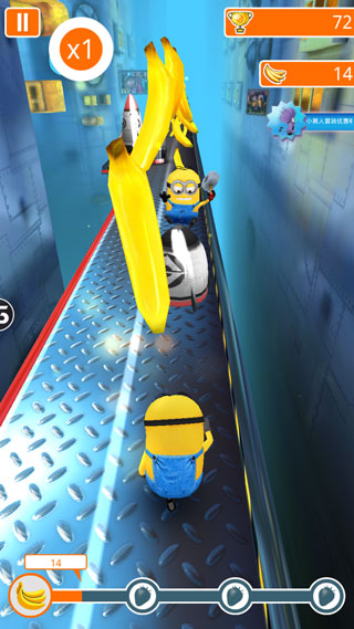 v12.6.0小黄人跑酷是一款老少皆宜的无尽跑酷手游,在这里你可以与小黄人一起奔跑,躲避诡秘的陷阱,对抗邪恶的反派,收集海量金灿灿的香蕉,为格鲁及其团队完成一系列的秘密任务。游戏中有多个地图场景,你可以从邻居家飞奔而过,在实验室躲避陷阱,冲进大反派的堡垒,从反恶棍联盟总部到维克多的老巢,或者穿越到远古,你可以在各种疯狂的地点奔跑。每个地点都有独特的障碍等你来攻克,踏上神秘的跑酷冒险旅程,加入来一场史诗级的独特跑酷体验。