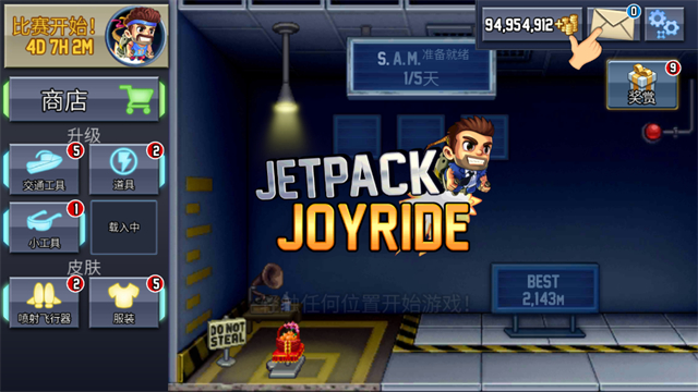 v1.101.3疯狂喷气机破解版是一款非常有趣的横版跑酷游戏,拥有十足的刺激感,又包含了许多娱乐元素,你将控制主角Barry一路向前奔跑,在奔跑的路上需要躲避电火链、激光器和追踪导弹,并保证Barry不被上面三个武器伤害到。轻触屏幕Barry就会利用喷气背包飞到空中,长按会飞到顶部,松手就会掉下来,如果被电火链、激光器、追踪导弹任意一个伤害到Barry就会死掉,这一次的奔跑就算结束。玩家驾驶传说中的机关枪喷射飞行器出发,消灭邪恶的科学家,但在每场游戏中,你要收集钱币并完成任务,以赚取现金,在“仓库”购买新装备!