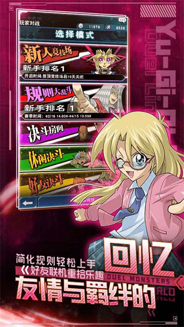 《游戏王:决斗链接》提供了丰富的实时PVP玩法,您可以在排名决斗中挑战来自全国各地的决斗者,成为最强决斗王!您也可以通过好友决斗,与朋友来一场轻松有趣的娱乐局,重温童年记忆。这里还有休闲决斗、决斗房间等不同的PVP模式,满足您多样的决斗需求。