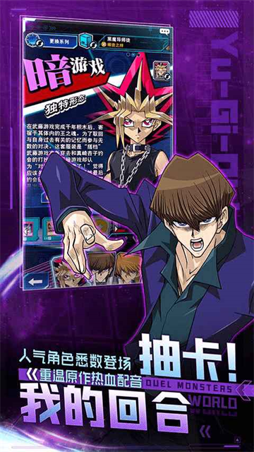 游戏内上千张不同属性与效果的卡牌,您可以随心所欲地构建专属卡组;游戏定期推出新活动新卡包,让您享受策略搭配的乐趣,体验畅快淋漓的决斗快感。