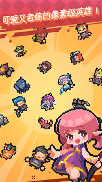 英雄之战是一款roguelike类RPG游戏,采用经典的像素画风,配合上8bit音乐,复古的风格带来特殊的视觉听觉体验!游戏玩法上较为简单,仅需通过教程后即可快速上手,在玩家进入游戏后共有三种初始职业供玩家选择,仅需使用游戏提供的方向键或者滑动屏幕控制角色移动和攻击即可,在游戏中后期还可以解锁更多或是可爱或是帅气的角色供大家使用,每个角色均有其独有的能力值以及皮肤。而本游戏最重要也是最出色的地方就是roguelike要素了,通过开启宝箱或者打开金色大门即可获得道具,这些道具可以为角色提供十分强力的加成,且道具的出现完全随机,充分丰富了游戏的可玩性,可以说是一款杀时间利器。