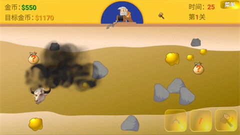2、游戏玩法简单,和原版黄金矿工差不多,钩取黄金,到达目标分数即可胜利。