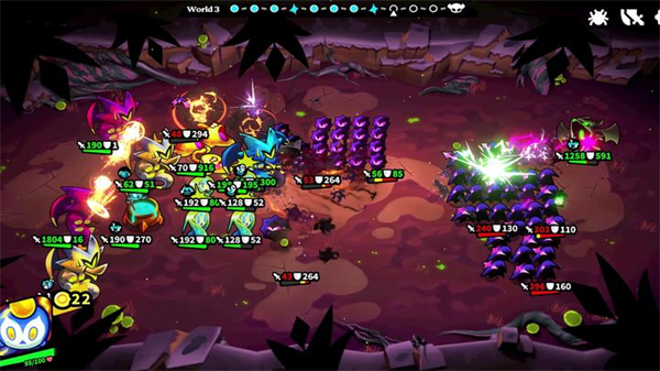 3、游戏采用回合制roguelike自动战斗系统,在7×9的方格棋盘上进行布局。玩家需要巧妙布置兵营、陷阱等战斗单位,通过空间叠放触发羁绊效果。