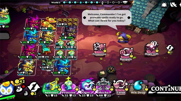 商店中除了部队之外,还会出现法术。法术分为两种,一种是给部队装备使用的,这相当于部队的专属装备,另一种则会在购买后立即生效,这相对于全程的被动特效。要注意的是,每只部队只能装备一个法术。在选择法术的时候,要注意法术和部队的契合度。我就喜欢给给肉盾部队加上反伤法术,利用反弹把敌人都给搞死。