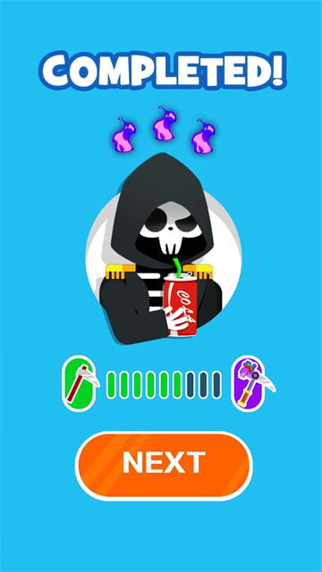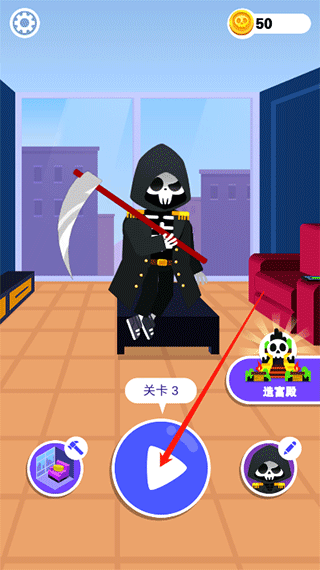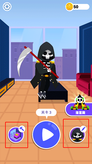 死神来了模拟器是一款非常好玩的模拟死神题材类型手机小游戏,精致卡通的游戏画面,采用了常见的闯关模式,在每个关卡中利用身边可用的物品,来完成有趣而独特的死亡,了解各种危险行为可能导致结果,能够在现实生活里有效的避开危险,增强自己的危机感。玩家还可以量身定制自己的死神和家庭装扮,有无数有趣的皮肤和家具任你挑选。