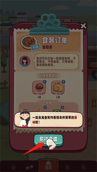 2、可看到详细的食客订单、任务需求和奖励内容,点击【前往合成】,