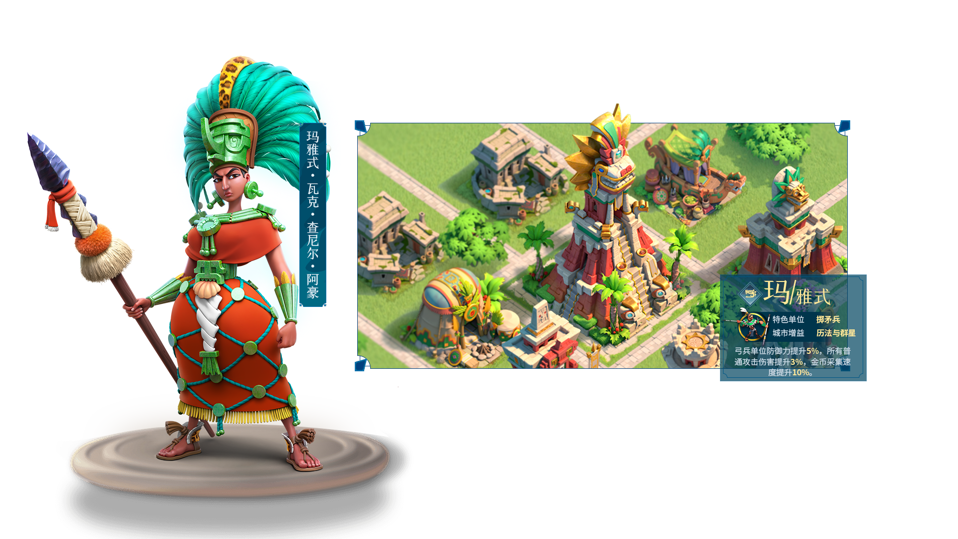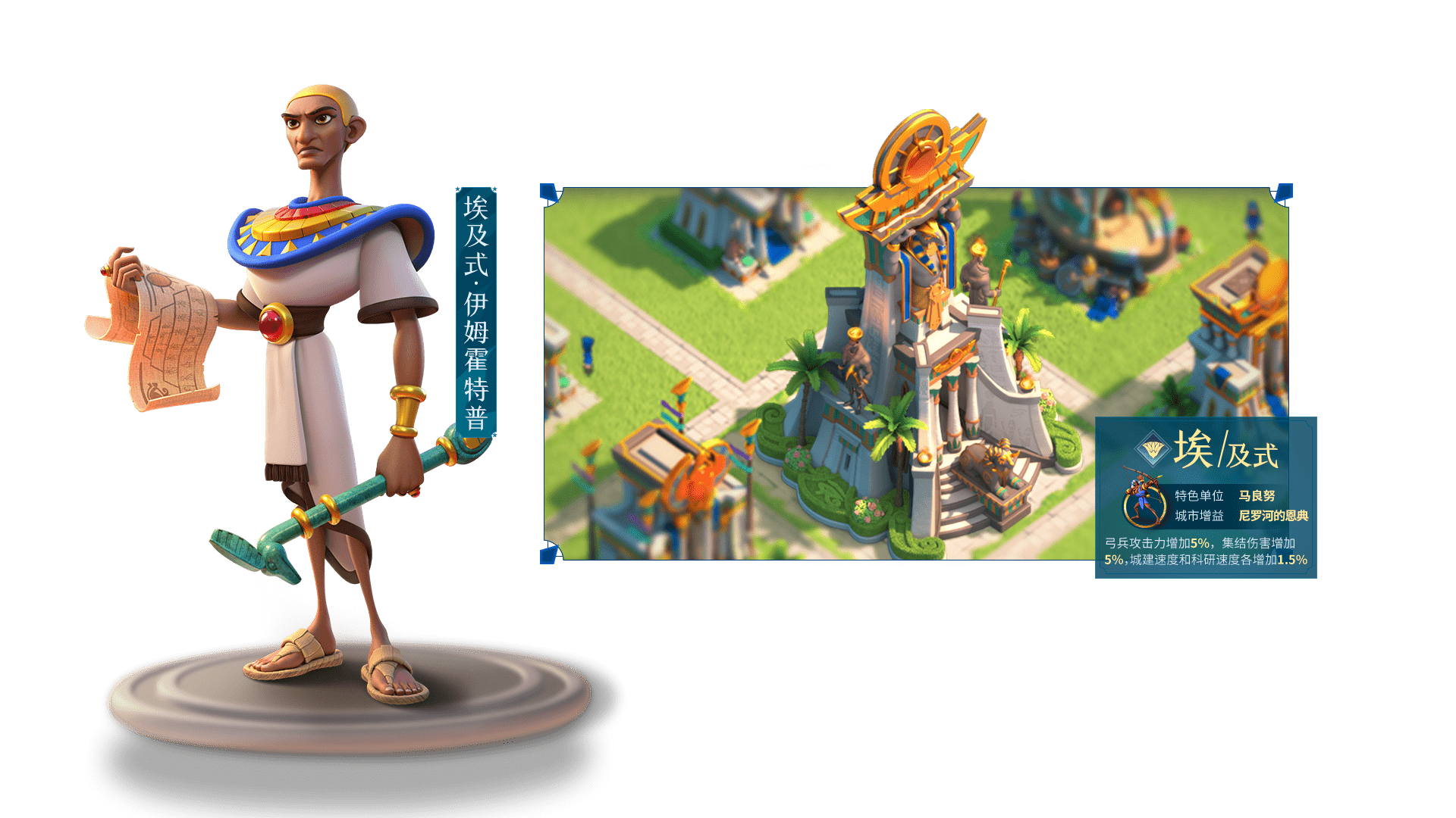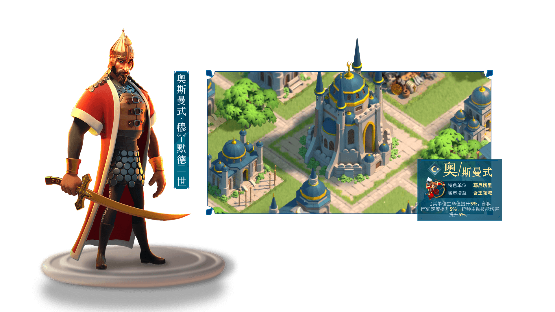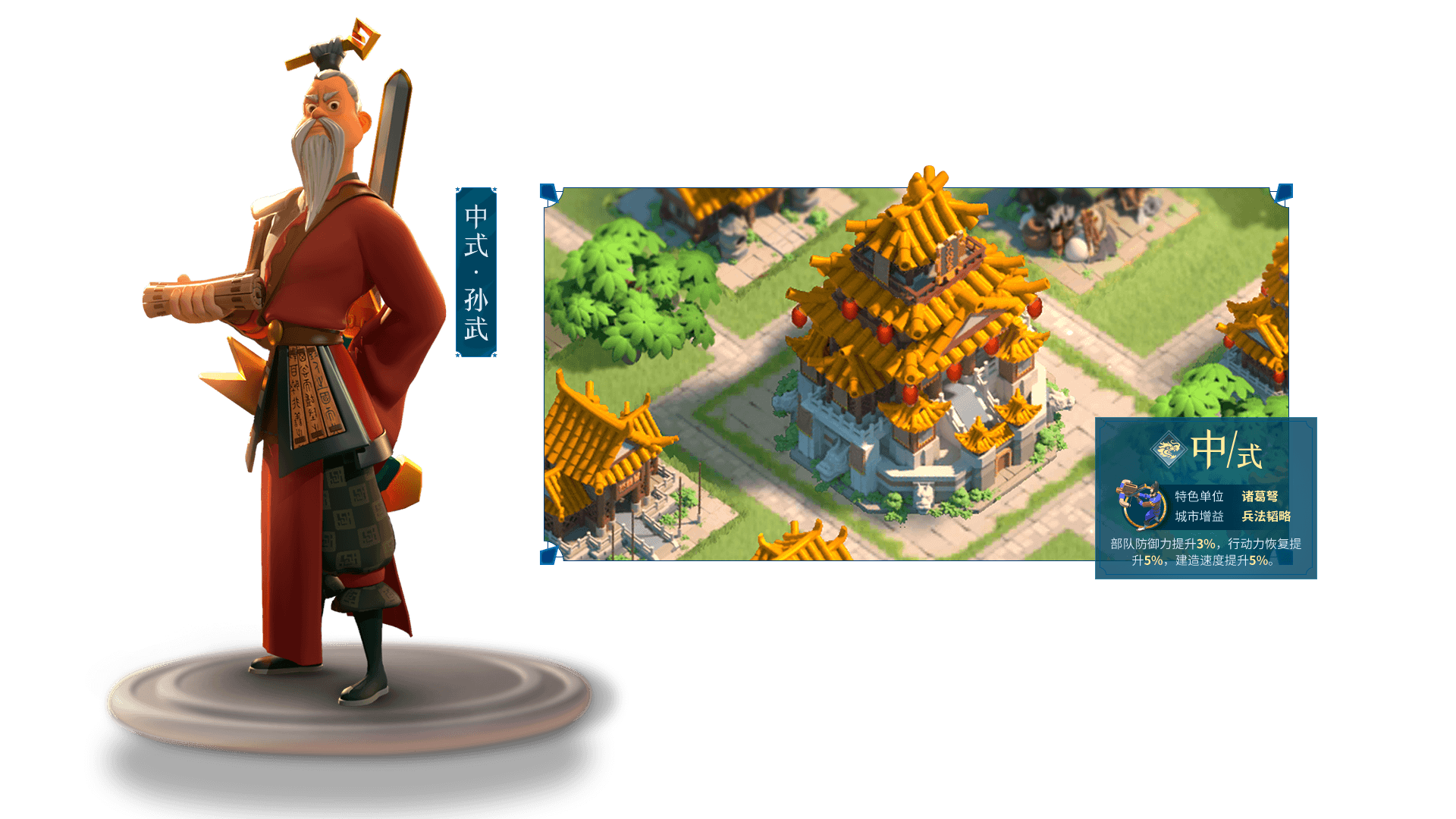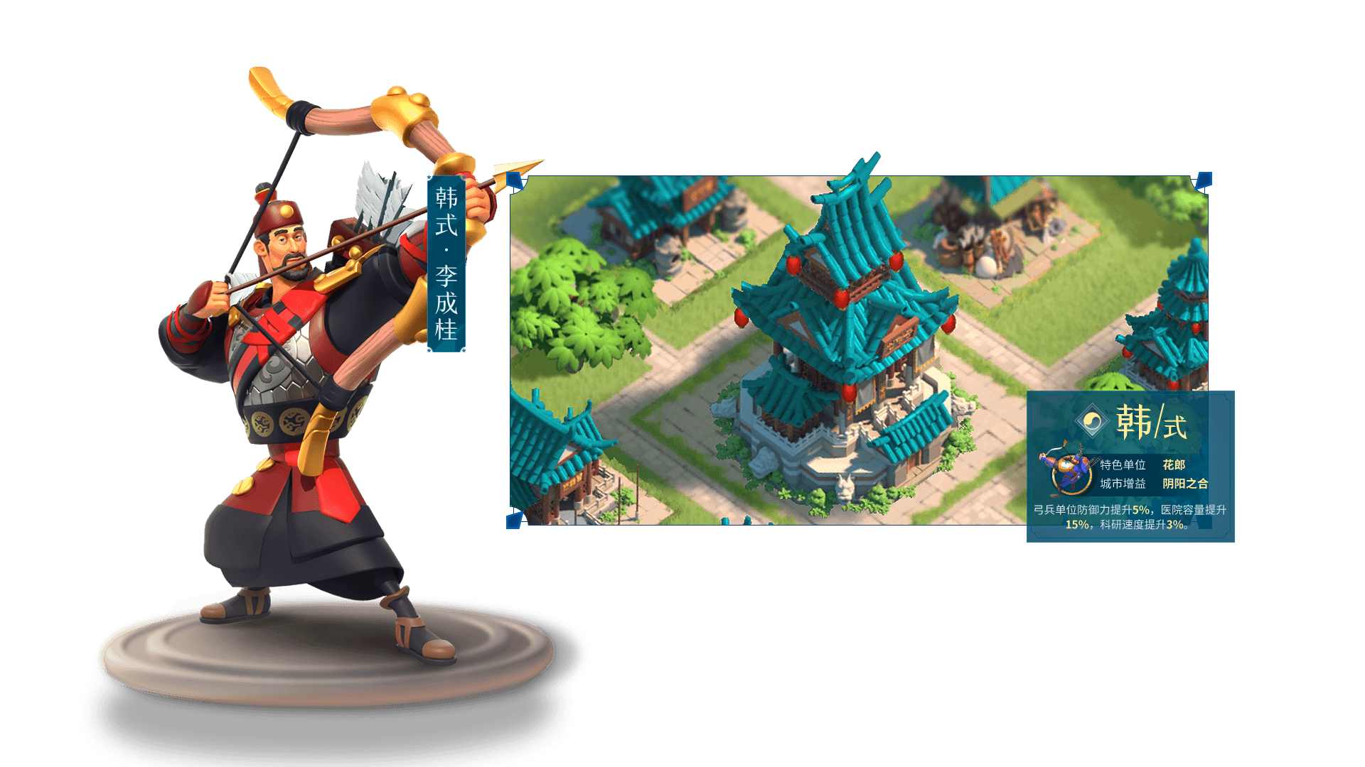 弓兵单位防御力提升5%,医院容量提升15%,科研速度提升3%。
