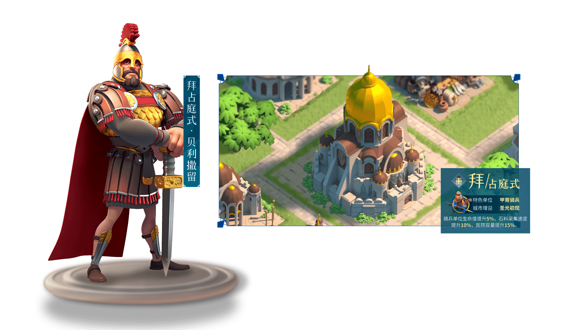 骑兵单位生命值提升5%,石料采集速度提升10%,医院容量提升15%
