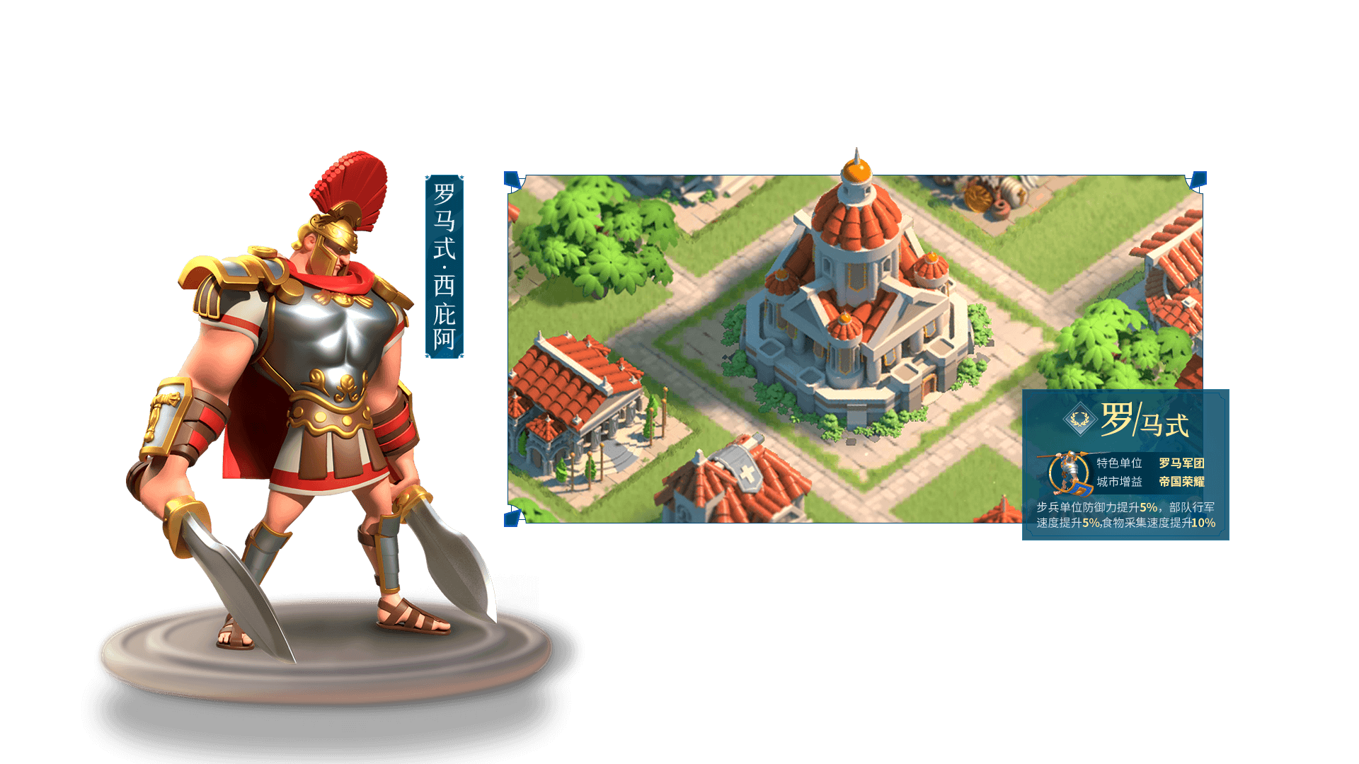 步兵单位防御力提升5%,部队行军速度提升5%,食物采集速度提升10%