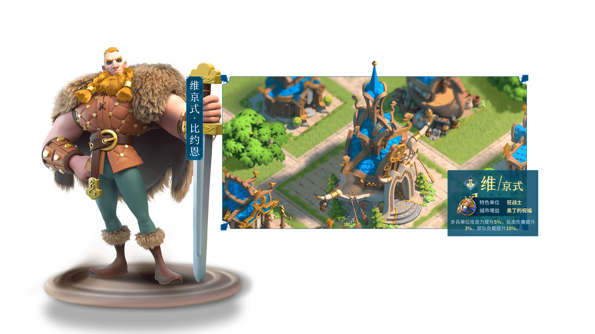 步兵单位攻击力提升5%,反击伤害提升3%,部队负载提升10%