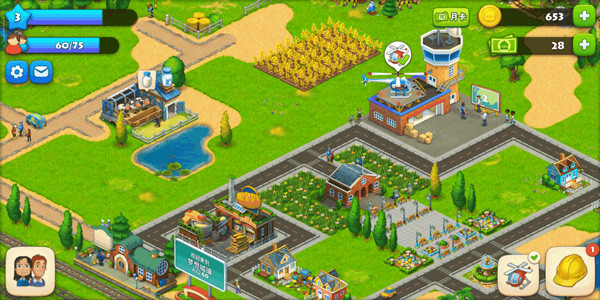 公路、人行道、地形,可以按照各位镇长的喜好设计小镇。多修公路、满足订单、养殖种植、发火车等可以累计成就获得绿钞和经验。每天登陆游戏可获得金币奖励。