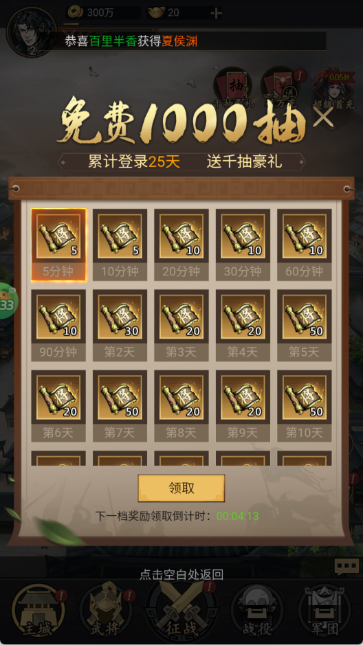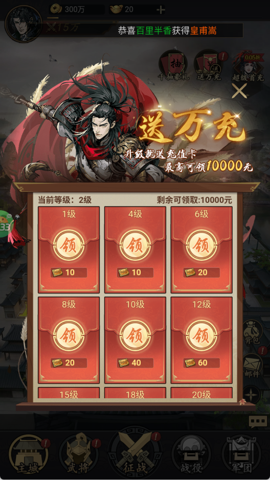 5、【上线领奖励】上线送神将郭嘉、全套橙装、诸葛锦囊!