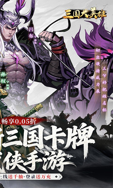 v1.0.0三国大英雄(0.05折送千抽万充版)是一款主三国题材的放置卡牌手游。游戏戏通过竖版回合制自动战斗与离线收益系统,大幅降低了操作与时间成本,让玩家即使每天上线十几分钟,也能稳步提升战力。武将系统覆盖多阵营名将,搭配羁绊与宝物后,策略空间依然充足。三国大英雄游戏中武将可随意培养,一键重置返还资源,大幅减少走弯路的焦虑感,对新手和回归玩家尤为友好。