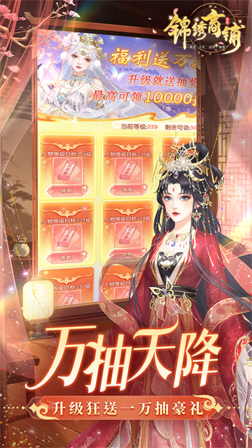 锦绣商铺(0.1折云锦织梦)是一款玄幻模拟经营手游,玩家将扮演一个意外穿越到南唐的商科生,面对经济崩盘、民不聊生的危局,你需要取代黑心首富,才能重返现代!运用你的商业智慧,从零打造客栈茶楼、玩转丝绸之路贸易、亲手装扮繁华京都!然而财富之路迷雾重重——为何与首富差距越拉越大?背后竟牵扯四国惊天阴谋!同时邂逅四位风格迥异的蓝颜,书写危难中的心动情缘;上百华服加身,尽显绝代风华!从一介商贾到富甲天下,你能否力挽狂澜,拯救苍生,找到归途与羁绊?立即开启这场融合经营、谋略、恋爱与装扮的逆袭首富传奇!