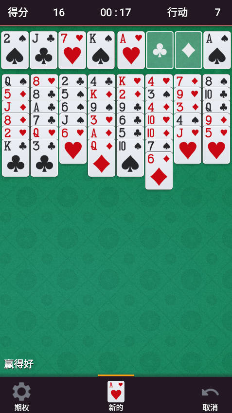v3.0空当接龙手机版是一款经典的纸牌接龙游戏,其继承了电脑版本的经典玩法,让你随时随地都能享受这款考验智力的游戏。游戏规则简单却富有挑战性,玩家需要将手中的纸牌按照从A到K的顺序移动,挑战大脑反应和策略规划,虽然规则易懂,但每一局的推理和布局都充满了趣味与深度。