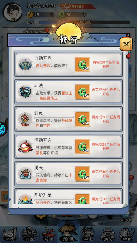随着任务进度推进,将逐步解锁【自动开鼎】【斗法】以及剑灵等功能与玩法,建议优先完成相关任务,提升整体修行效率。