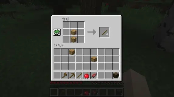 工欲善其事,必先利其器,所以我们在这里首先要制作的是木棍,只有有了木棍我们才可以合成更高级的工具,在这里我们先合成一把木斧,一把木镐,还有一把木铲。
