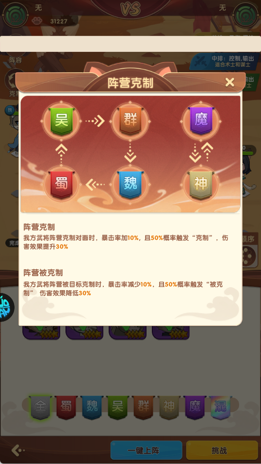 在布阵时尽量选择克制敌方阵营的武将,可大幅提升暴击率与伤害输出,显著降低战斗难度。