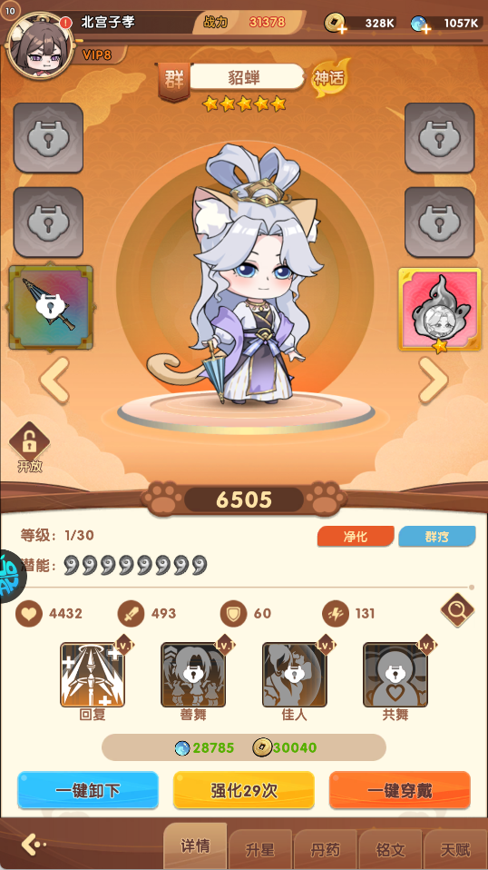 神话武将是阵容核心,获取后应优先将等级强化至上限。技能升级方面,建议先提升具备【回复】效果的技能,以增强队伍整体续航能力。