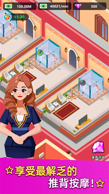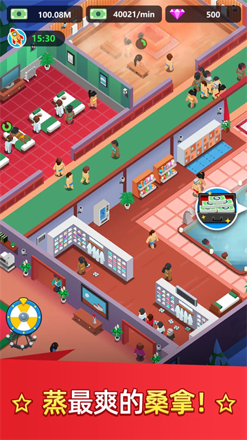 除此之外:玩家们可以去通过海量洗浴服务以此来打造出最为豪华的温泉中心,通过泡澡、淋浴、搓背和按摩等服务来吸引更多的顾客到访,同样你也可以通过此操作来加速收益的创造。感兴趣的朋友们欢迎前来下载体验。