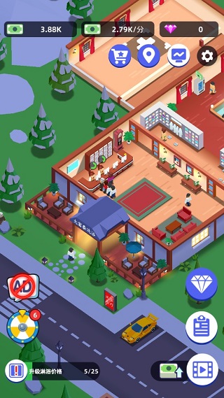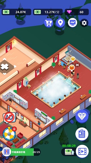 成为温泉大亨,管理不同业务。打算投入资金,打造高级服务设施吗?您可以通过加薪,调动员工积极性,让他们拥有更高的服务效率。