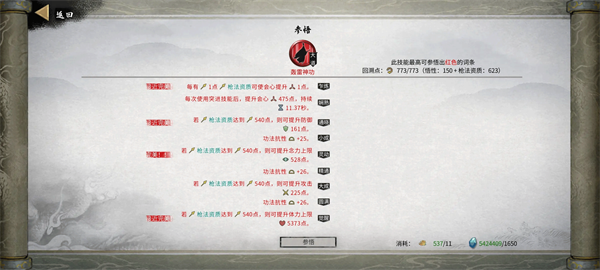 心法筑根基,武技/灵技探深浅,身法创机会,绝技造优势,神通定乾坤。不同秘籍有不同的特性。