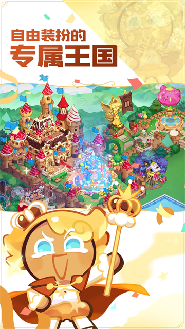 勇敢饼干逃出烤箱,饼干人王国初落成!在王国中不仅有丰富的生产建筑,完备的生产玩法,还有各色的主题装饰,支持高自由度的摆放装扮,打造出风格迥异的王国风景。
