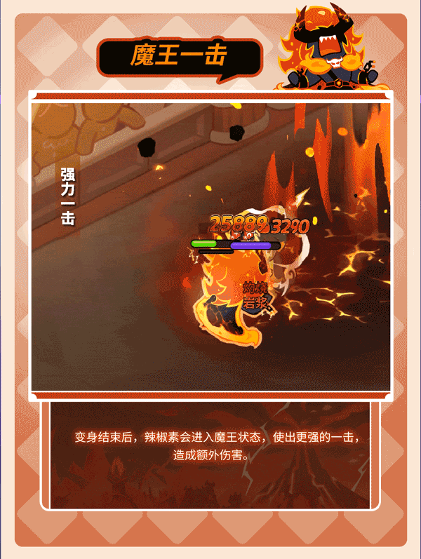 2、变身结束后,辣椒素饼干会进入魔王状态,给予敌人最后一击。