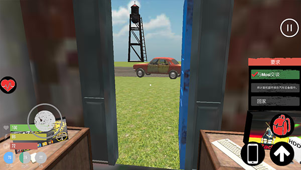 5、然后打开房门,点击后备箱,再次点击“背包”将东西放入。