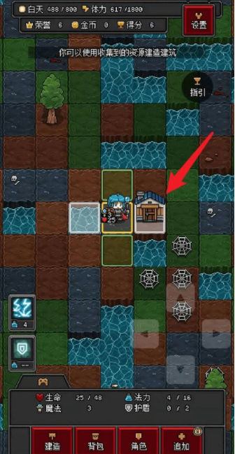 2、地图开启后,刷蜘蛛,顺路收集铁矿等资源以备建立一个箭塔的资源,随身带着用箭塔刷蜘蛛。大约100个boss能集齐32神秘硬币,开启生存天赋优惠卷(现在可能爆率高些),这是开局必备的。