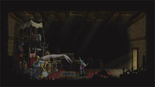 3、敲钟解谜:继续向左移动,到达一座大钟下方,通过攻击或互动敲响大钟。