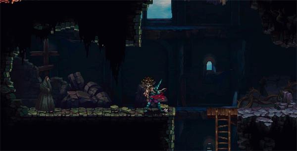 4、坠落获取:敲钟后,角色会因机关触发坠落至下方区域,此时即可拾取疫病之刃(孽刃的替代品或相关祷文)。
