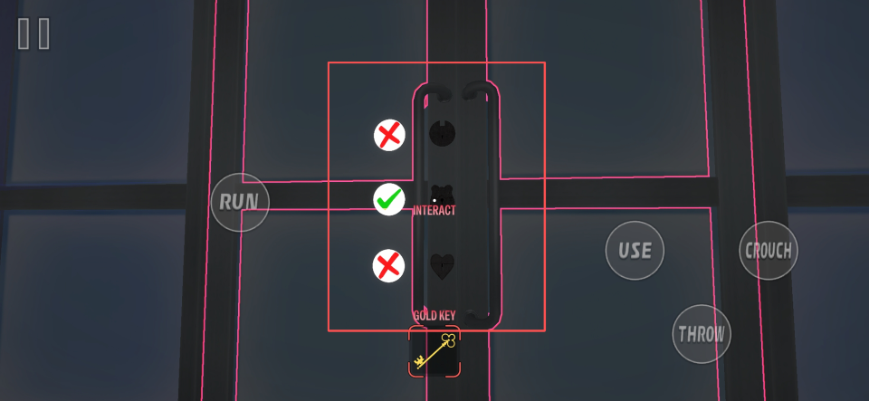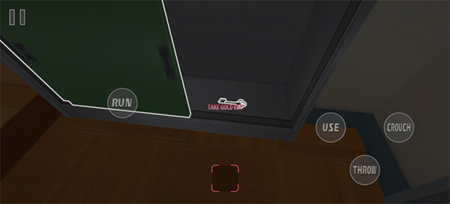 2、进入关卡后,通过左下角的虚拟摇杆控制角色行动;界面左侧的【Run】用于加速奔跑,右侧则分别对应【Use】交互、【Crouch】下蹲以及【Throw】投掷操作。