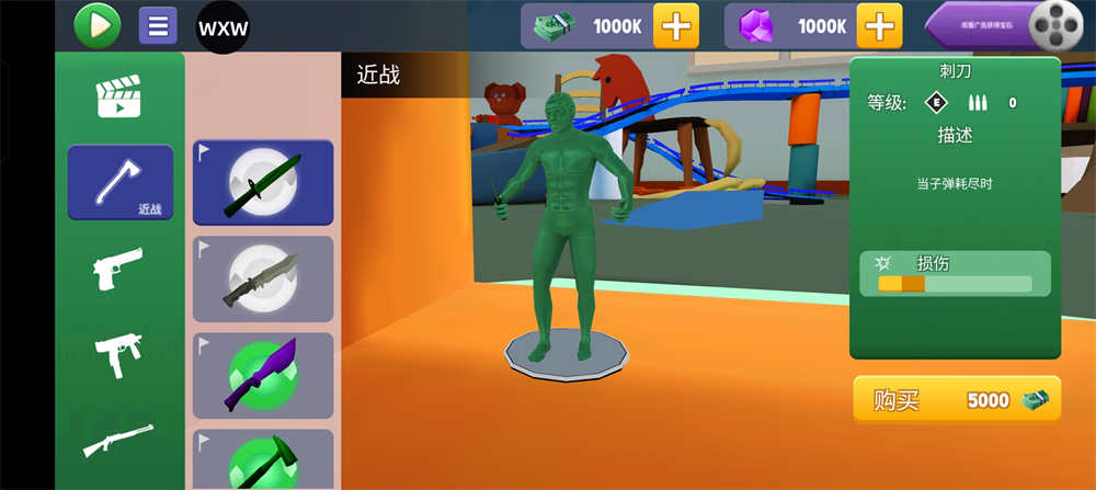 5、右上角可以切换动作或者武器,可以在购物车商城内购买新型防具和武器!