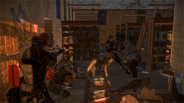 5、防守尸潮时,或通过狭窄地段时,如果你现在前方,请蹲下,向前或者向后直线移动,不要左右横跳,堵到队友的枪线。