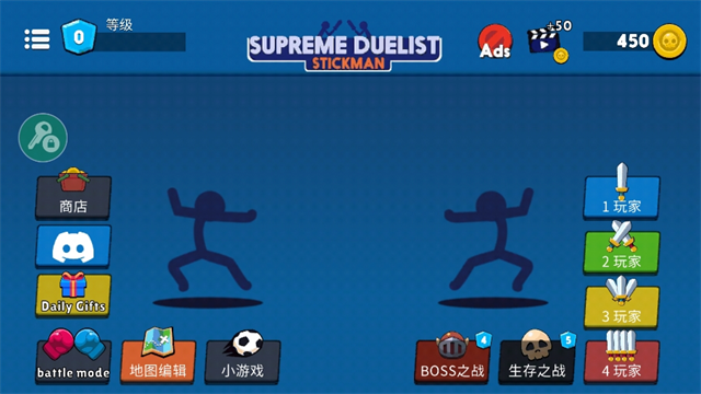 至尊决斗火柴人破解版是一款非常好玩刺激的横屏动作闯关类手游,以搞怪又有趣的火柴人为题材,采用了清新卡通的风格设计,简洁有趣的游戏画面,趣味十足的动作场景,搭配上简洁的画风,能够让你在无聊的时候拥有无限欢乐。在这里你将可选择专属自己的火柴人来进行游戏,同时整体游戏操作相当的刺激,整个过程也是会出现各种刺激性的场面,你还能够感受到对敌人造成的强烈的打击感,致力于带给你前所未有的冒险体验。游戏中玩家将操控火柴人前往不同的竞技场,挑战一个个强大的对手,他们的招式、打法都截然不同,非常考验大家的反应速度,你也可以加上自己的好友一同作战,击败对手,获取比赛的胜利。